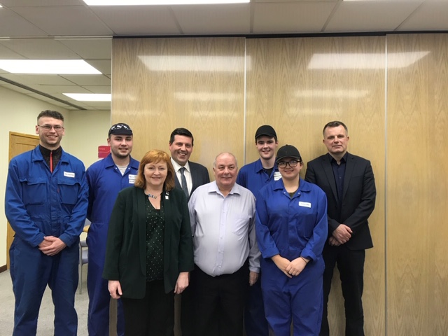 Ms Harper and the Minister met with four of the apprentices who have progressed through the apprenticeship pathway offered to schools throughout the region. By joining the different apprenticeship opportunities the four have progressed in different ways in the ‘earn as you learn’ route which can enable young people to gain degree qualifications through an alternative pathway to university.